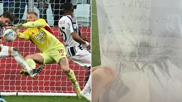 比赛进行到点球时刻,作为尤文第三门将的平索利奥从替补席一路小跑至球门后方,递给迪格雷戈里奥一张写有提示的纸条。这一细节在赛后被转播方捕捉到,也成为比赛的一大看点。